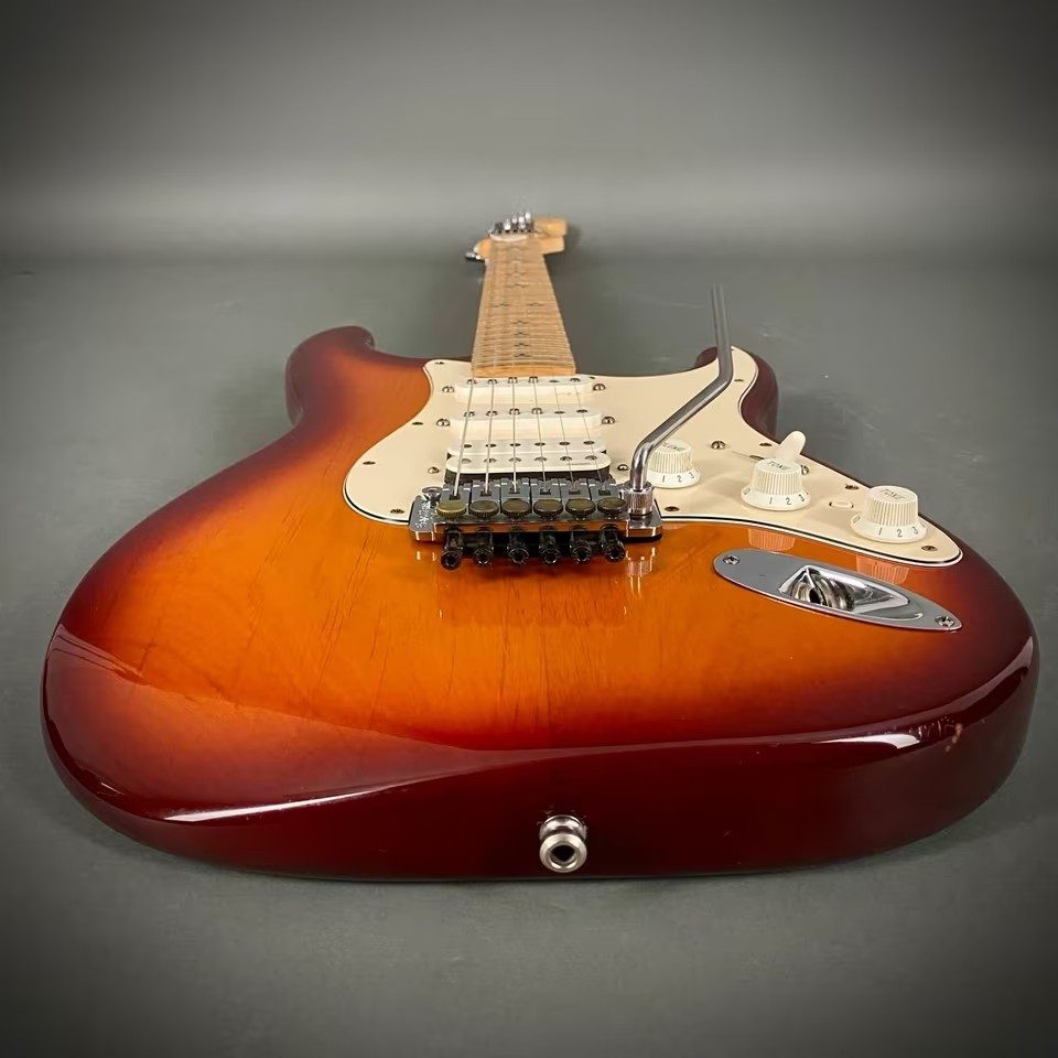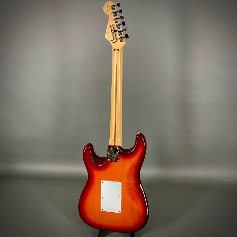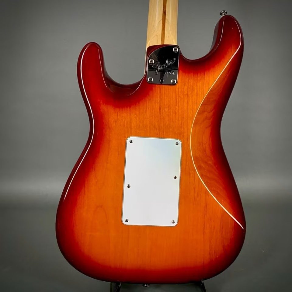 hier eine top erhaltene Fender Stratocaster Richie Sambora aus der USA Fertigung mit originalem Tweed Case und dem dazugehörigen Case Candy. Dieses Signature Modell kommt in der Farbe wie cherry sunburst und ist mit der gewünschten Pickup Konfiguration des Meisters bestückt. Zwei Texas Special und ein DiMarzio PAF Pro am Steg sorgen in Kombination mit dem aktiven Mid Boost für eine echte Menge an exquisiten Sounds, die richtig Spaß machen. Das extra für die diese Gitarre Custom Profile liegt zusammen mit den Medium Jumbo Bünden fantastisch in der Hand.
