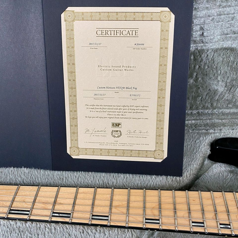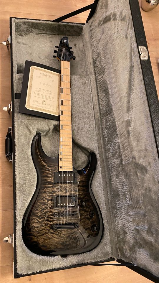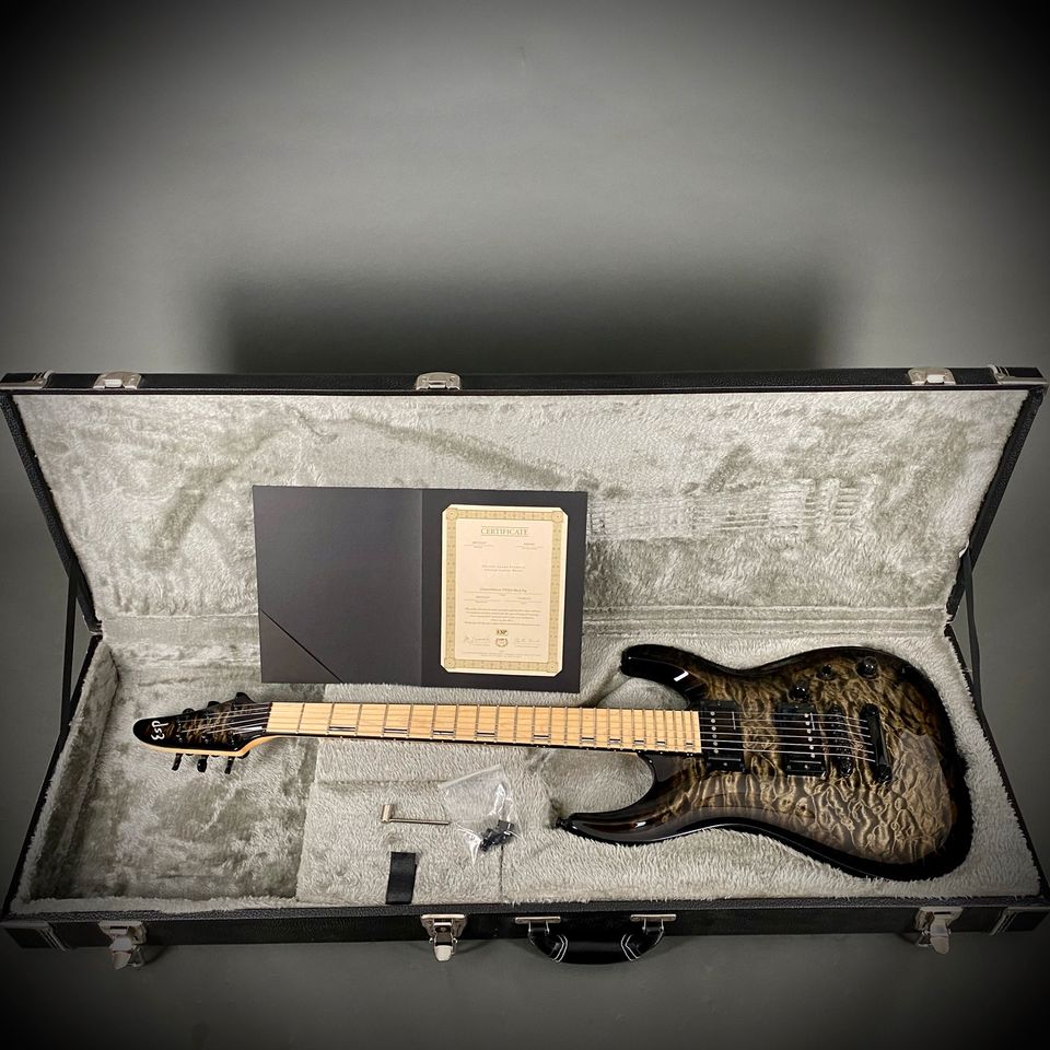 Hier eine wunderschöne, nahezu neuwertige ESP Custom Horizon NT QM Black Fog Custom Order, made in Japan, inklusive Zertifikat, allem Zubehör und im original ESP Case..