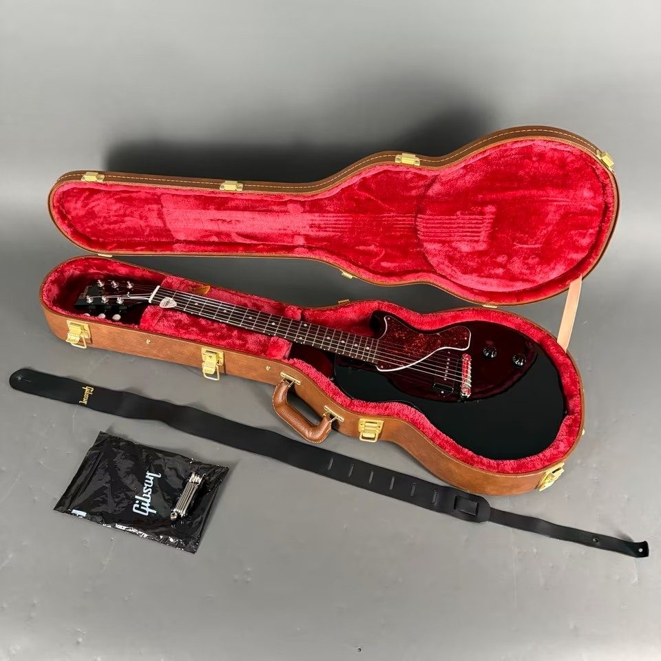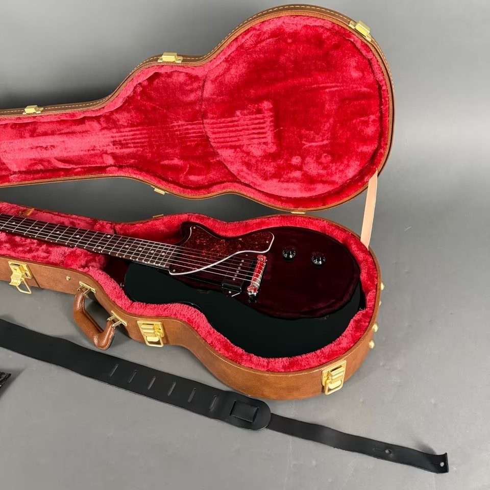 Hier eine Gibson Les Paul Junior in Ebony, ein absolutes Leichtgwicht da nur 3,070Kg, im original Gibson browncase.