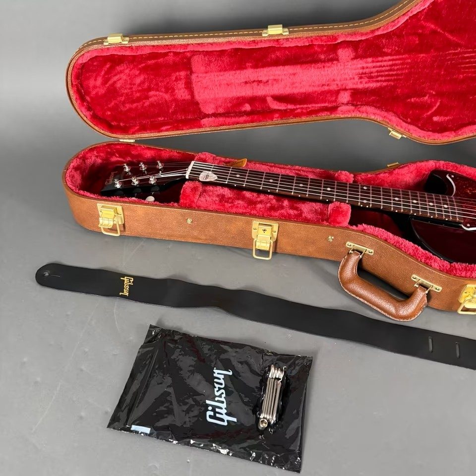 Die Gitarre kommt im originalen Gibson Browncase, inkl. Zubehör wie Gibson Ledergurt und „Bordwerkzeug“ ..