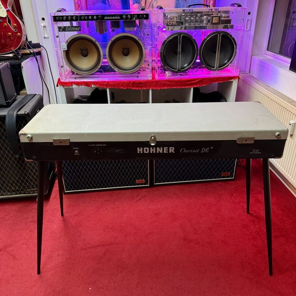 Hier ein Hohner Clavinet D6 in sehr gepflegtem Originalzustand, inklusive original Beine/Füße (wie neu) inkl. deren Transporttasche und original Deckel!