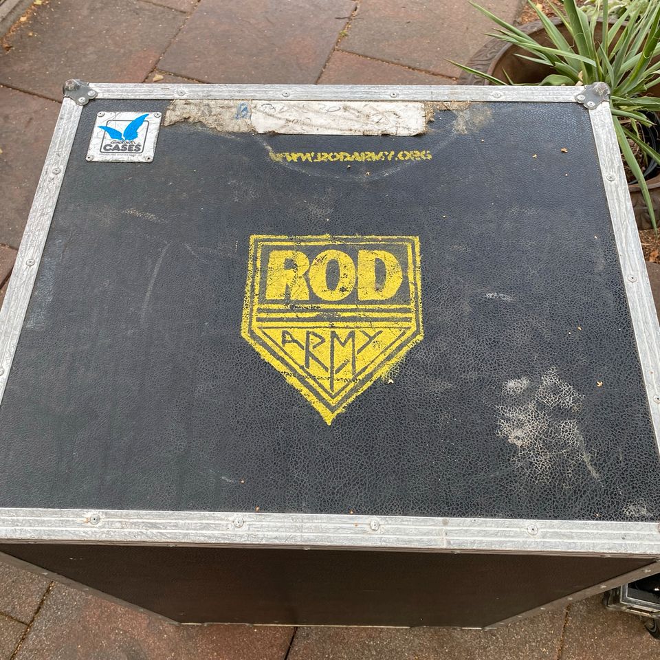 Hier eine SWR Henry Bassbox im dazugehörigem MGM-Flightcase, (Haubencase) mit ROD ARMY „Sprühlogo, und in echter roadlife Optik!